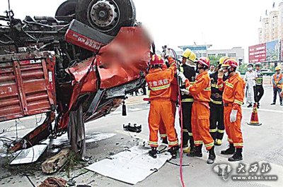 接到目击者报警后,辖区交警、消防以及120急救车立即赶到现场,消防救援人员发现,侧翻的货车变形严重,车内驾驶员被困,然而令人遗憾的是,该驾驶员经现场120急救人员确定,已经没有了生命体征。随后,高速交警协调两辆起吊车将货车吊至路面,高新区消防中队官兵成功将被困者遗体救出,并移交给120。