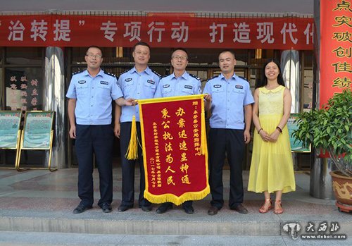 大西北网讯 近日,永登县“村掌柜”电子商务有限公司职员吴女士及家人将一面题有“办案迅速显神通、秉公执法为人民”的锦旗送到永登县公安局指挥中心,感谢民警及工作人员细致工作为她找回了6000多元遗失现金和全部物品。