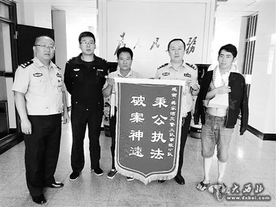 图为群众为龚家湾交警送上的锦旗。兰州晨报记者 马成斌 摄