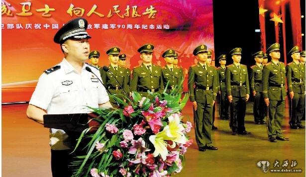 肖春局长在活动仪式上作了讲话。他首先代表市政府、省公安厅、市局党委,向长期奋战在维护社会稳定、保卫人民安全的全市公安现役部队官兵,致以节日的祝贺和崇高的敬礼!他指出,90年前南昌起义的枪声,标志着中国共产党创建了自己的革命军队,肩负起独立领导武装斗争的历史使命。90年来,人民军队高举旗帜,听党指挥,创造了彪炳史册的光辉业绩!90年来,人民军队薪火相传,血脉永续,保持了红色传统的基因本色!90年来,人民军队心中有魂,脚下有根,浇铸了坚如磐石的忠诚信仰!