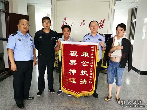 大西北网讯(记者 金振华 特约记者 谈新宇 文、图)近日,一位慈父带着刚刚出院的儿子来到了兰州市公安局交警支队龚家湾大队,其儿子一只胳膊因治疗需要还用绷带吊着,另一只手上拿着一面锦旗。原来,他们是7·13交通肇事逃逸案的受害人。“我们真的不知道怎么才能表达心里的谢意,如果不是你们神速破案,秉公执法,孩子的医药费都没办法弄。受害人李某及其父的感激之情溢于言表。”