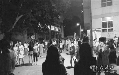 8月8日晚地震发生后,兰州大学医学院校区内的学生跑到楼下空旷地带。人民网