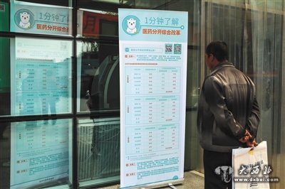 2017年4月6日,天坛医院,门诊楼外,一位来自河北的男士在看医事服务费的收费标准告示。市人社局昨日介绍,全市676家定点医疗机构已实现异地就医直接结算。新京报记者 彭子洋 摄
