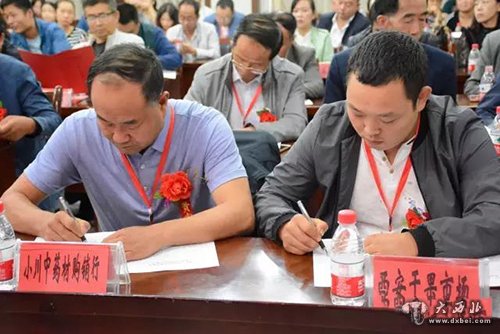 大西北网讯 8月29日下午4:00,甘肃陇南成县核桃产销对接商贸洽谈会暨招商引资项目签约仪式在成州国际大酒店四楼会议室隆重举行,会议由陇南西成经济开发区管委会主任王卫东主持,陇南市招商局副调研员赵明远,县委常委、组织部长王新宏,政府副县长张靖邦,政协副主席赵海明,长征红二方面军纪念馆馆长左翼,县林业局、农牧局、招商局、商务局、电商办等部门负责人,还有来自河北、陕西、四川等省外购销企业负责人,甘南、陇南兄弟市县等省内购销企业及营销大户、县内营销大户及专业合作社负责人、招商引资项目投资客商、省内外媒体记者共计100余人参加了签约仪式。