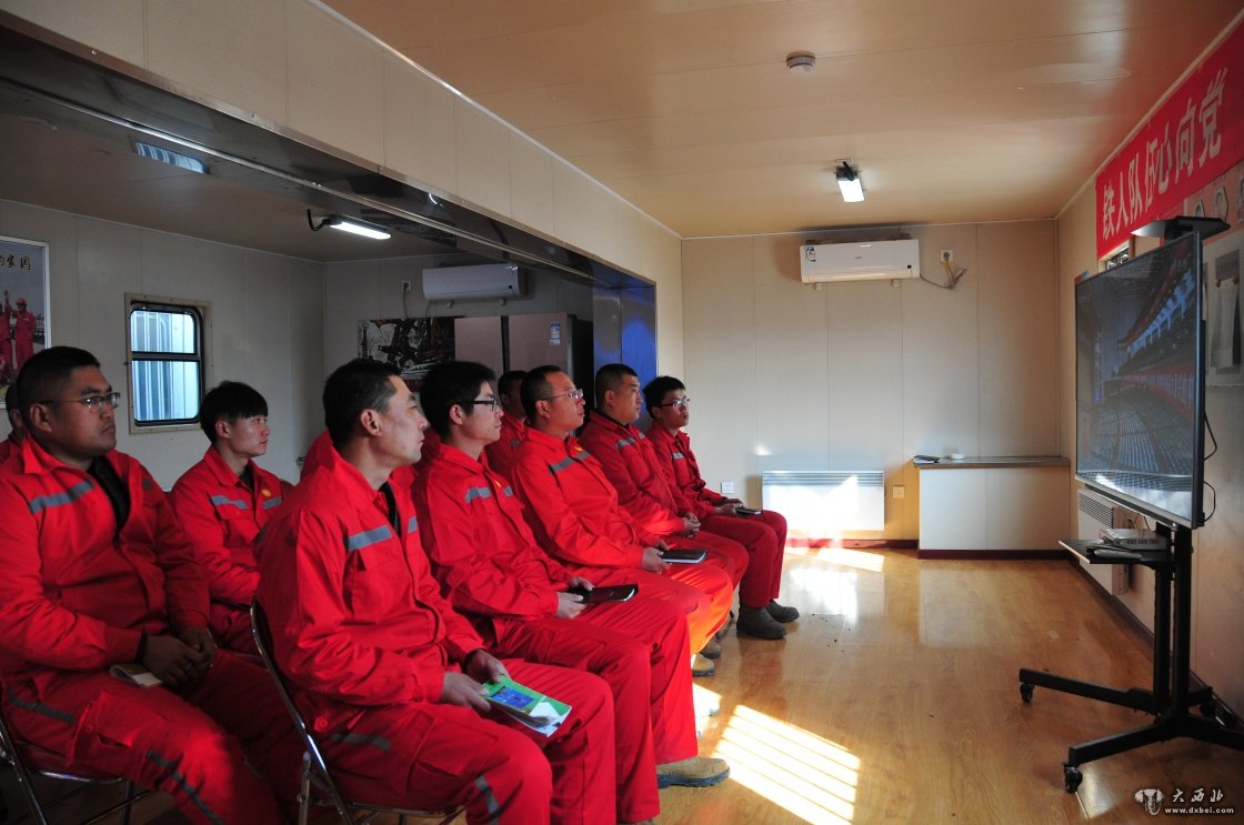 10月18日,黑龙江大庆油田1205钻井队工人收看十九大开幕式直播。