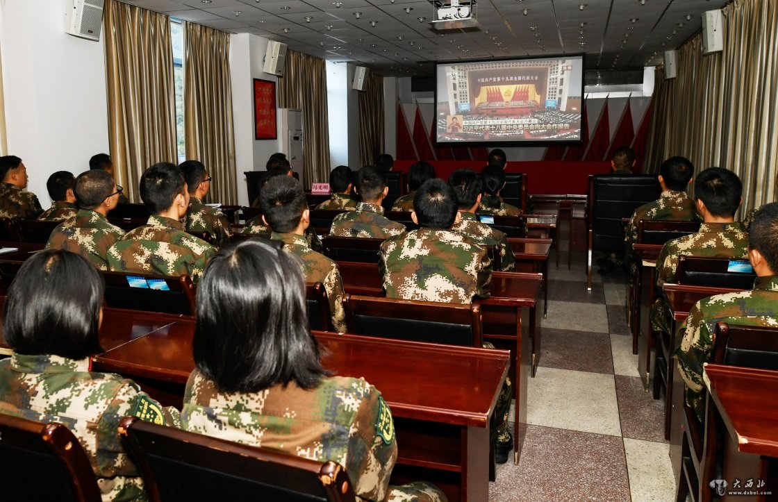 10月18日,西藏聂拉木边防检查站官兵收看十九大开幕式直播。