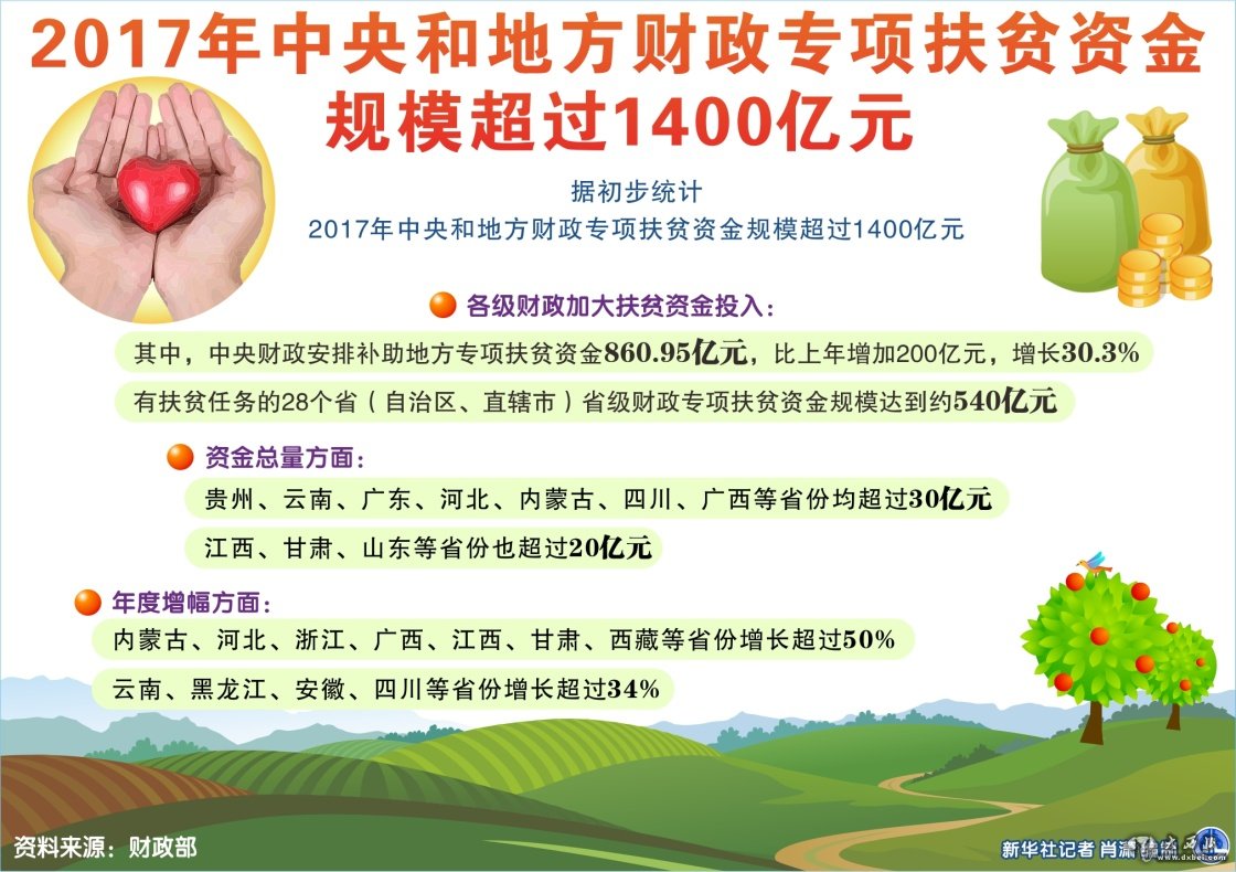2017年中央和地方财政专项扶贫资金规模超过1400亿元(资料图表)。新华社记者肖潇编制