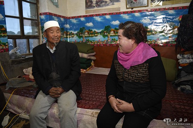 2016年10月27日,革命老区宁夏同心县贺家塬村第一书记丁海燕(右)在贫困户家中了解近况。