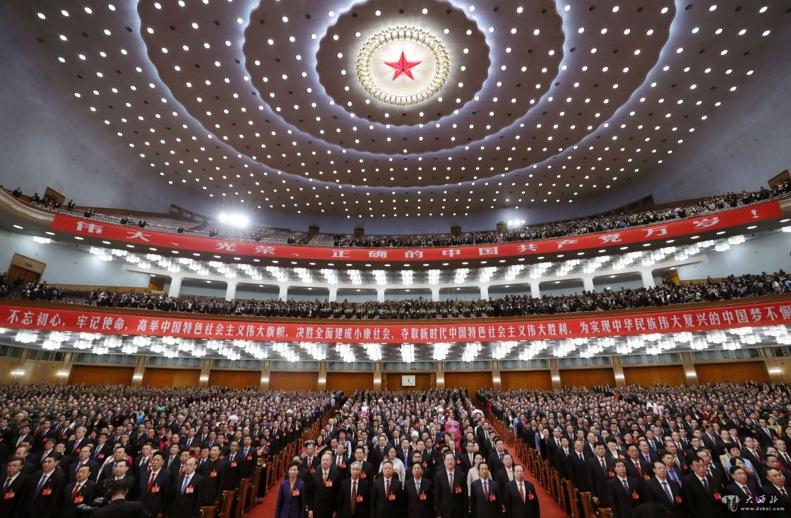 10月24日,中国共产党第十九次全国代表大会闭幕会在北京人民大会堂举行。这是全体起立,奏《国际歌》。 新华社记者 鞠鹏 摄