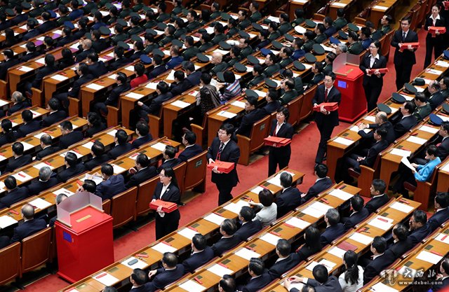 10月24日,中国共产党第十九次全国代表大会闭幕会在北京人民大会堂举行。这是工作人员在发选票。 新华社记者 王晔 摄