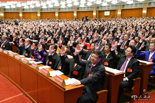 10月24日,中国共产党第十九次全国代表大会闭幕会在北京人民大会堂举行。这是代表举手表决。 新华社记者 姚大伟 摄
