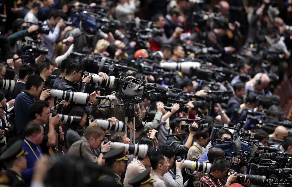 2017年10月18日,中国共产党第十九次全国代表大会在北京人民大会堂开幕。这是中外记者现场采访。新华社记者丁林摄