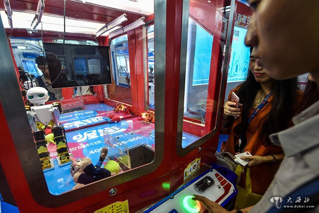 11月17日,观众操纵“夹娃娃”机器人夹玩偶。