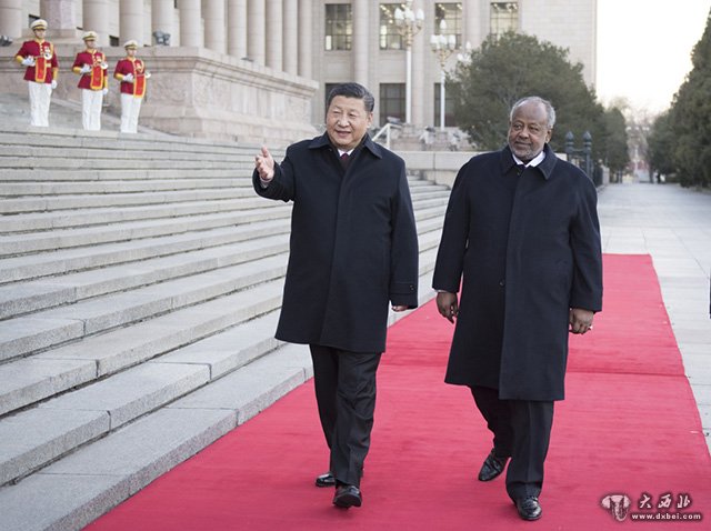 11月23日,国家主席习近平在北京人民大会堂同来华进行国事访问的吉布提总统盖莱举行会谈。这是会谈前,习近平在人民大会堂东门外广场为盖莱举行欢迎仪式。