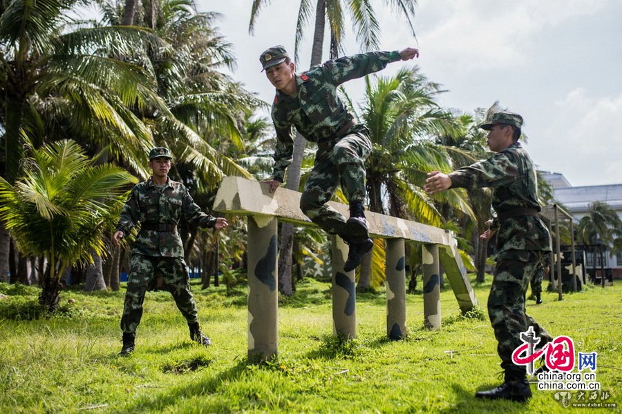 凭借着自己的努力,赵凯龙从一名“落后生”变成了中队的排头兵。他2013年代表中队参加总队组织的军事训练大比武,荣获18米抓绳上科目的第一名,年底获三等功一次。2014年超强台风威马逊正面袭击海南岛,在抢险救灾中表现突出,获得三等功一次,2015年,参加总队组织的军事训练尖子暨反恐特殊人才比武,被评为十大军事训练标兵,获得三等功一次。中国网记者郑亮摄