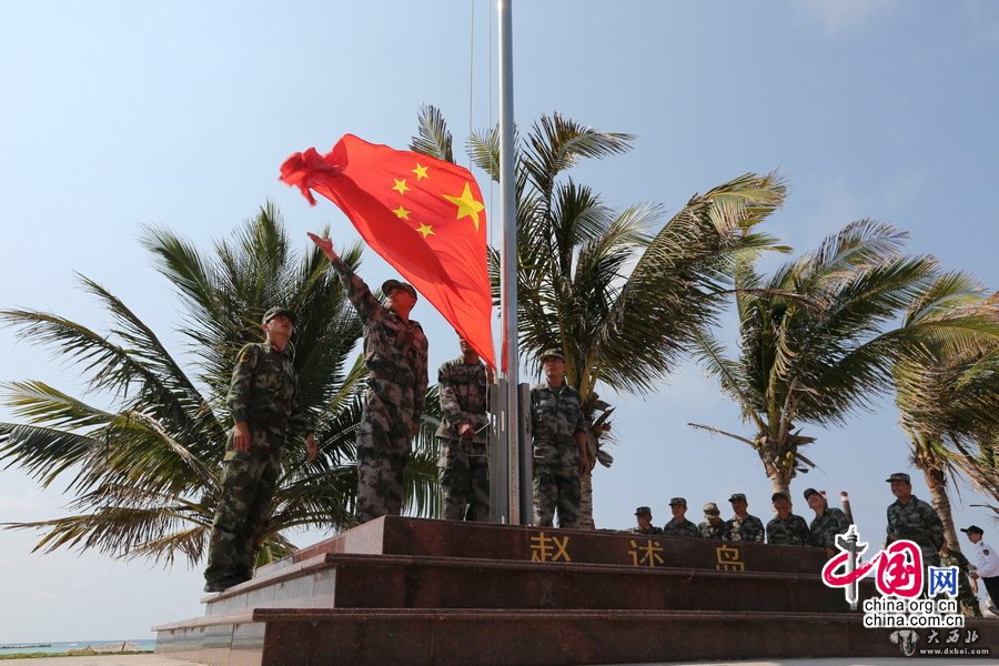 能够在自己的部队担任一名升旗手,对于每个当兵的战士来说都是至高无上的荣耀,能在武警驻地最“南极”的永兴岛上担任一名升旗手,那是更让人自豪的事情。凭借出众的军事业务能力和良好的军人形象,武警三沙中队一班班长中士赵凯龙从2012年第一批武警官兵驻岛时就被任命为升旗手,至今后一直担当此重任。在这里升起了三沙设市后的第一面五星红旗,是他担任升旗手最难忘的一次经历。中国网记者郑亮摄