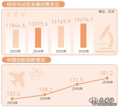 本报北京12月10日电(记者陆娅楠)国家统计局日前发布的《2016年全国科技经费投入统计公报》显示,2016年我国研发经费投入总量达到15676.7亿元,比上年增长10.6%,增速提高1.7个百分点,再创历史新高。12月7日对外发布的2016年中国创新指数测算结果显示,2016年中国创新指数为181.2,比上年增长5.7%,呈现稳步提升态势;技术市场成交合同金额首次突破万亿大关,研发投入强度超过欧盟15个初创国家2.08%的平均水平。一系列数据表明,我国落实创新驱动发展战略取得显著成效,创新型国家建设持续推进。
