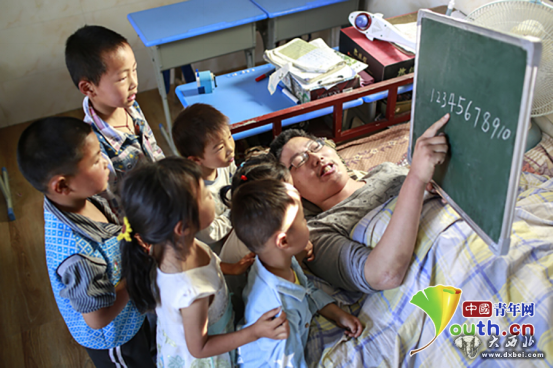 由于叶海涛的双下肢关节僵直,没有办法笔直地坐着,他便躺在病床上,侧着身子用小黑板给孩子们讲解题目。可是这样一来,躺的时间一旦久了,叶海涛的身体便会全都麻木,疼痛难忍。但他却始终坚持着……最难熬的是夏季,他睡在板床上长时间保持同一个姿势,全身都被汗水浸透了,额头上黄豆般大小的汗珠不断地冒出,滚落到板床上,床面已经被浸湿。常人都难以忍受,更何况是患病在床的叶海涛呢?在这种异常难受的状态下,叶海涛凭借自己惊人的毅力,克服困难,十八年如一日,坚持为孩子们辅导功课。这份教学工作,是繁杂的,须深入学习、不断钻研,研究教学思路。为了更好地胜任这份辅导任务,他经常在空余时间阅读有关教育方面的书籍。