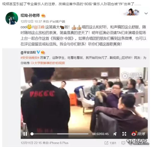 视频甚至引起了专业音乐人的注意,改编这首作品的"80后"音乐人孙玥也被“炸”出来了……