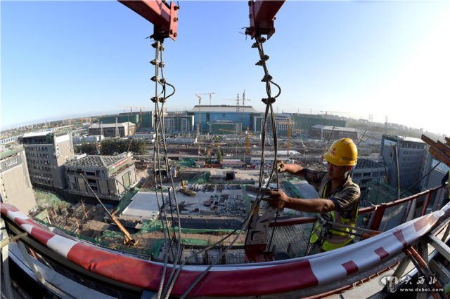 工人在北京建工集团城市副中心A2工程工地施工(9月11日摄)。新华社记者 罗晓光 摄