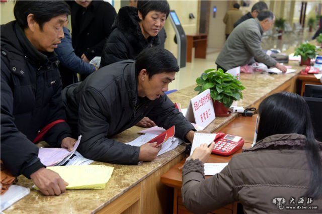 几名贫困户在安徽金寨县贫困人口医疗补充保险受理窗口办理手续(2017年1月5日摄)。新华社记者 刘军喜 摄