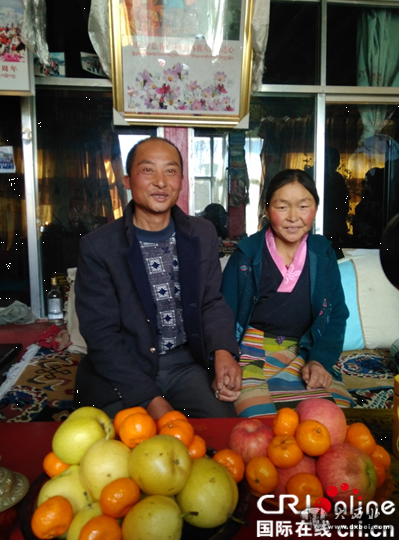 切洼乡普纳村村民央珍(藏)和丈夫徐文军(汉)