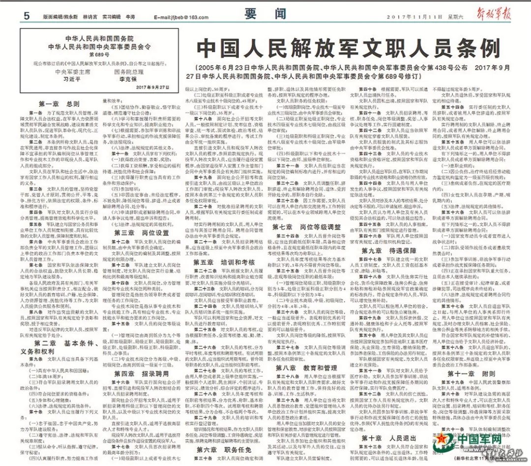 9《中国人民解放军文职人员条例》修订实施