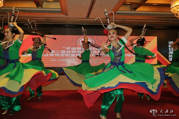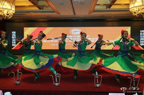 第二届甘肃导游职业发展论坛上甘肃张掖大峡谷景区演出舞蹈。 贾笑云 摄