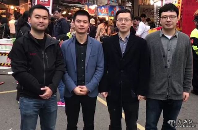 刘欢(右一)与新华社驻台同事一起在台北街头录制视频,向同事们祝贺新春快乐。