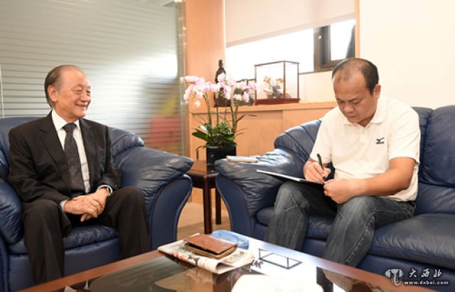 刘刚(右)采访新党主席郁慕明。