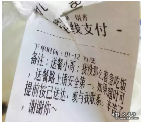 一位顾客点外卖时留言——