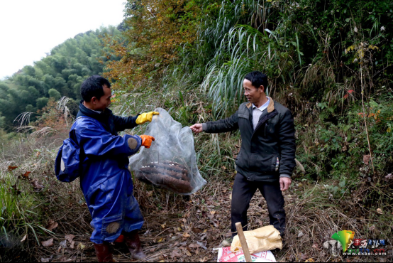 尧章洪教贫困户如何上山挖蜂。薛玉娟摄