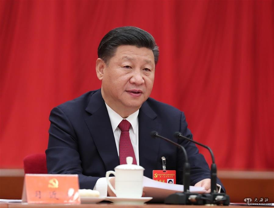10月25日,中国共产党第十九届中央委员会第一次全体会议在北京人民大会堂举行。习近平同志主持会议并作重要讲话。新华社记者刘卫兵摄