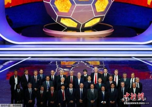 资料图:进入俄罗斯世界杯决赛圈的各国球队代表合影。