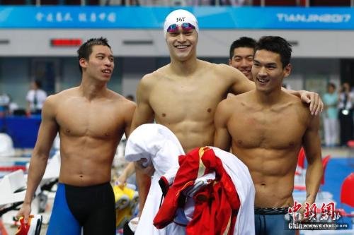 资料图:孙杨和徐嘉余。中新社记者富田摄