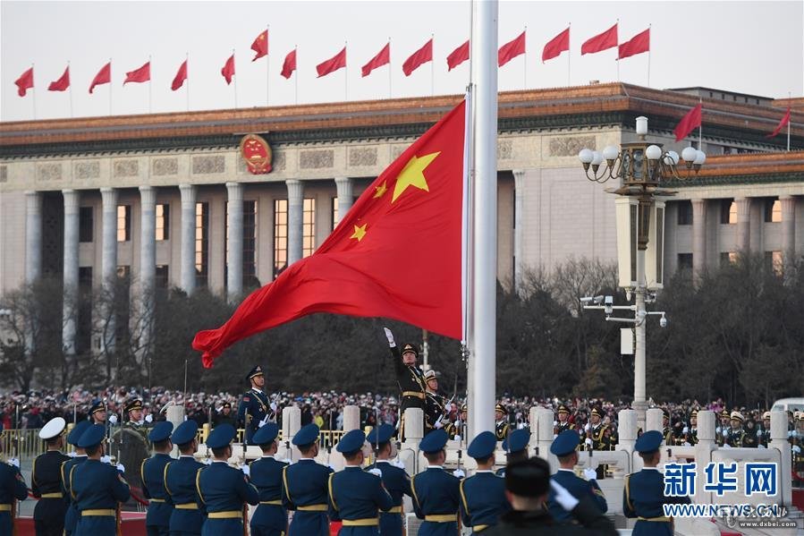 1月1日,北京天安门广场举行隆重的升国旗仪式,这是由人民解放军担负国旗护卫任务后,首次举行的升旗仪式。新华社记者申宏摄
