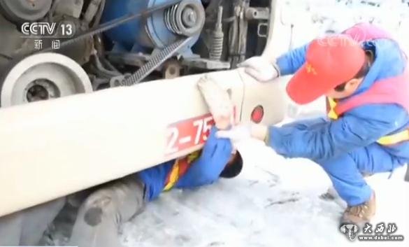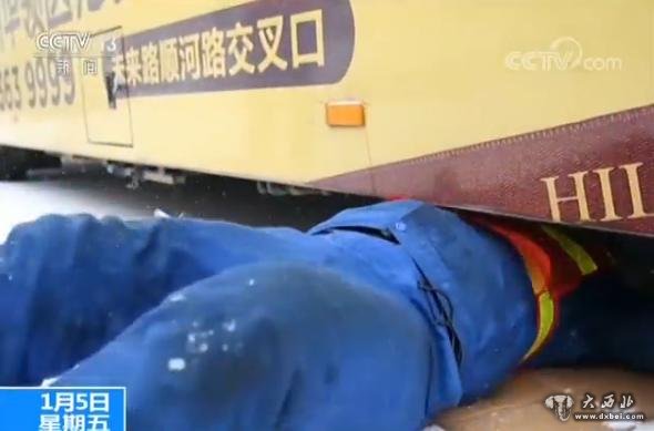 一张废旧硬纸壳往雪地里一摊,背对故障车辆一躺,双脚用力、身体一窜,几秒钟的功夫,抢修队员就已经钻到车底。