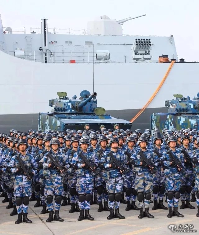 聆听主席训令后,身在海军野战化分会场的海军陆战队官兵与井冈山舰,接连展开实战背景下装载登陆兵、紧急离码头等课目演练。一时间,舰艇起锚、“战鹰”升空,海天之间装甲轰鸣、铁流滚滚。(图片:蒲海洋江晓卫编辑:守一)
