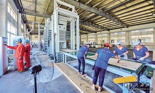 浙江湖州市南浔区一家木地板企业的工人使用“电能替代”改造后的热压机加工木地板。新华社记者徐昱摄