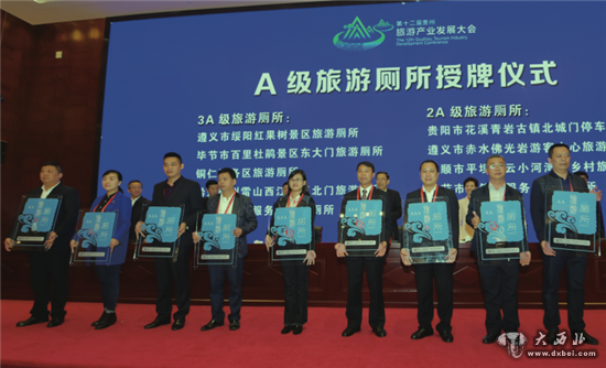 11月8日,2017年全省旅游工作推进会在平塘天文小镇召开。省委书记孙志刚,省委副书记、代省长谌贻琴等九位省领导为全省第一批评定等级的厕所授牌。图为授牌仪式现场。当代贵州全媒体记者张凯摄。