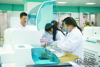 位于广州国际生物岛的金域检测科技股份有限公司,工作人员在实验室工作。梁炜培摄光明图片/视觉中国