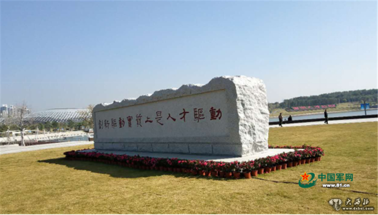 人才公园内刻有“创新驱动实质上是人才驱动”的语录石。记者何佳摄