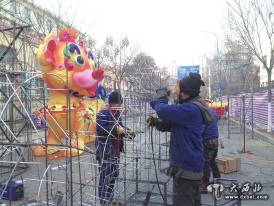 大西北网讯 1月18日,记者在西固区康乐路一处厂房内看到,来自四川的80余名灯艺“匠人”,正在分工忙碌,为西固区“2018金城西固迎春灯会”赶制花灯。