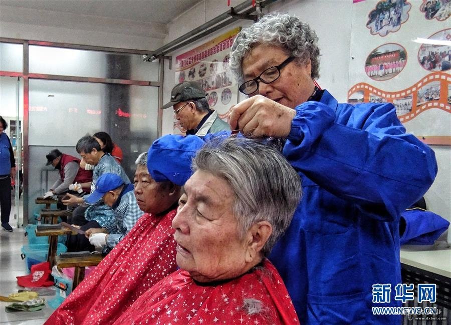 1月26日,六营门社区学雷锋志愿者朱丽凤为居民义务理发。