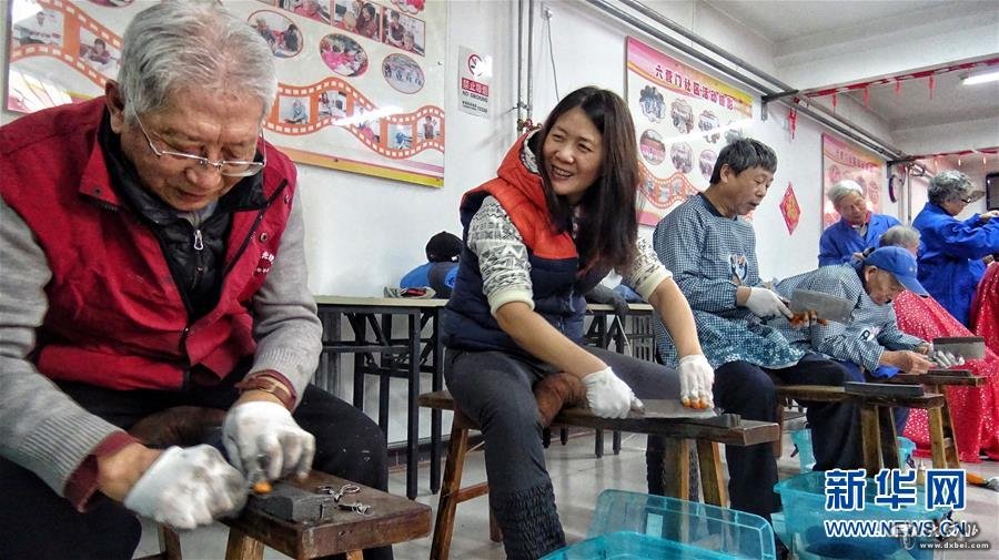 1月26日,六营门社区学雷锋志愿者服务队里的“磨刀老人”郑振祥(左一)为社区居民磨刀。当日,北京丰台区东高地街道的雷锋志愿服务联合会志愿者开展迎春节服务社区老人的活动。志愿者们为社区内的老人义务理发、按摩、修理家用工具、量血压等。新华社记者李欣摄