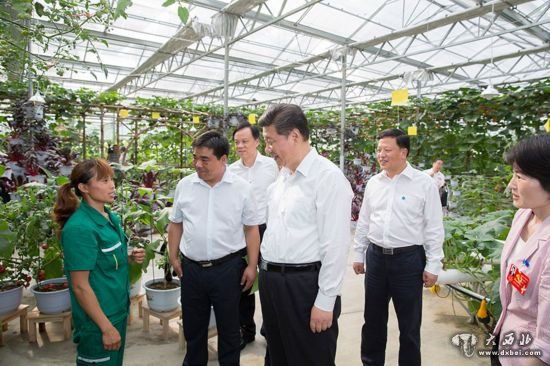 2015年6月16日下午,习近平在遵义县枫香镇花茂村的现代高效农业智能温控大棚,向正在劳动的村民了解增收致富情况。新华社记者黄敬文摄