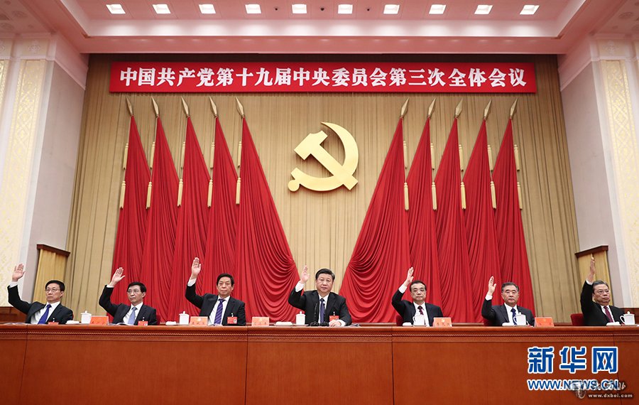 中国共产党第十九届中央委员会第三次全体会议,于2018年2月26日至28日在北京举行。中央政治局主持会议。新华社记者姚大伟摄
