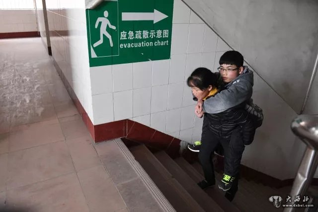 黄必华父亲离世后,黄乜鲜悲痛欲绝,这位瘦弱却很坚强的女人,每天按时背着儿子上5楼教室,早中晚几个来回。