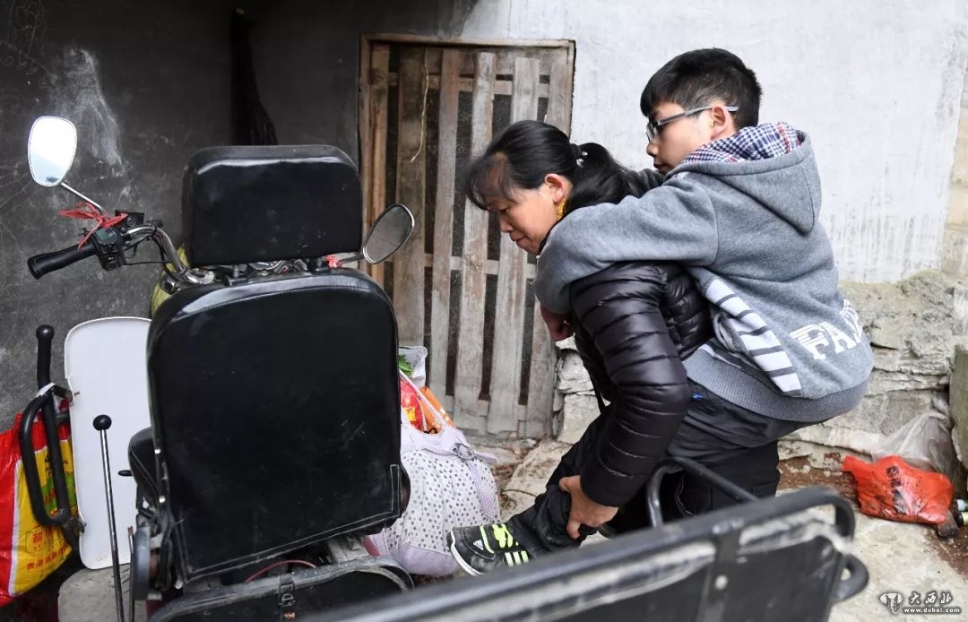 多年前,黄必华因病下肢瘫痪,家境贫寒。尽管有低保,但日子依然困难。黄乜鲜坚持让孩子上学读书,每天背着他一路求学,她说:“上学才是他唯一的出路,我不知道能背多久,能背一天我就坚持一天。”
