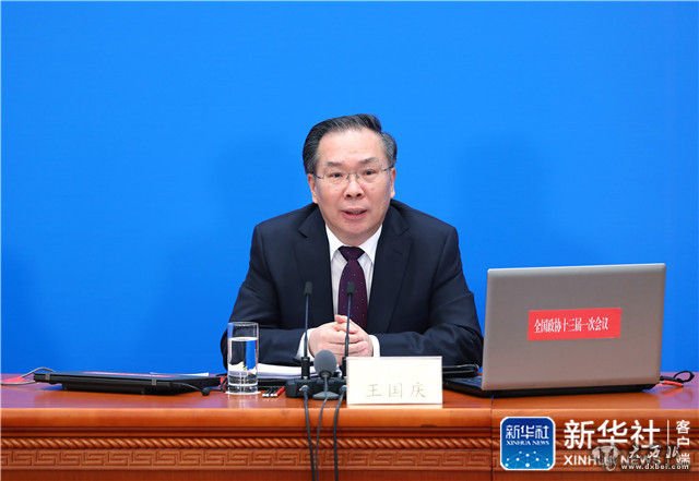 ↑3月2日,全国政协十三届一次会议新闻发布会在北京人民大会堂举行,大会新闻发言人王国庆介绍会议有关情况并回答中外记者提问。新华社记者张玉薇摄